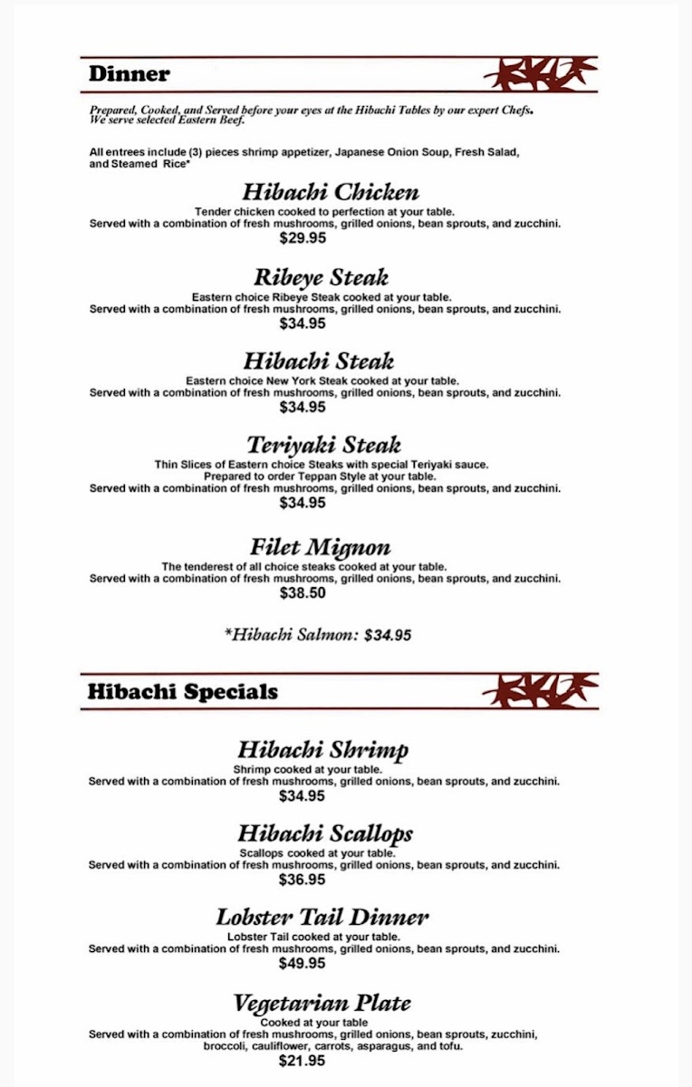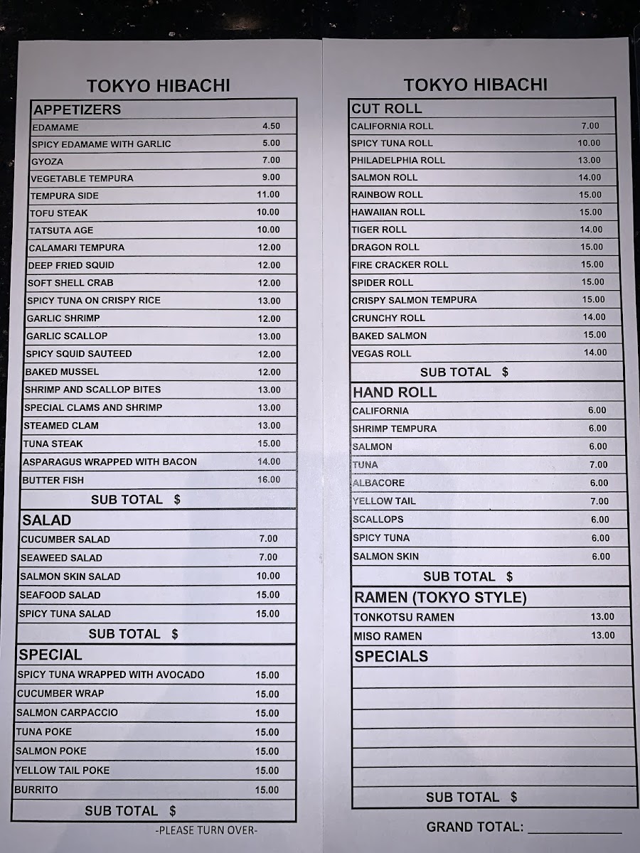 The menu at Tokyo Hibachi presents a thoughtful blend of classic Japanese dishes and vibrant hibachi-style preparations, catering to both casual lunches and relaxed dinners. You’ll find a variety of comforting appetizers such as crispy potstickers and spicy edamame, alongside fresh sushi rolls like the Fire Cracker and California Roll, offering familiar flavors with subtle creative touches.